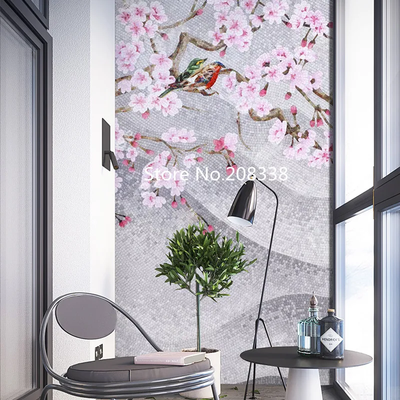 Special Offer Beautiful Plum Flower Full Hand Made Glass Mosaic Artwork Wall Mural Free Shipping Discount 0% Today!
